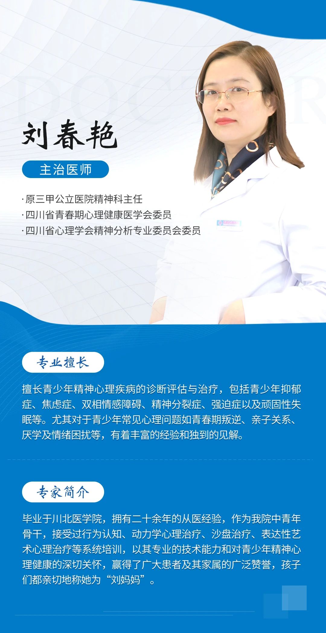 为了充分发挥我院在省内精神疾病领域的突出优势,彭祖贵名医工作室由四川大学华西医院副教授彭祖贵领衔,携手成都棕南医院学科骨干张正琼、刘春艳、李明超主任,医术共融,强强联合,满足更多患者就医需求。