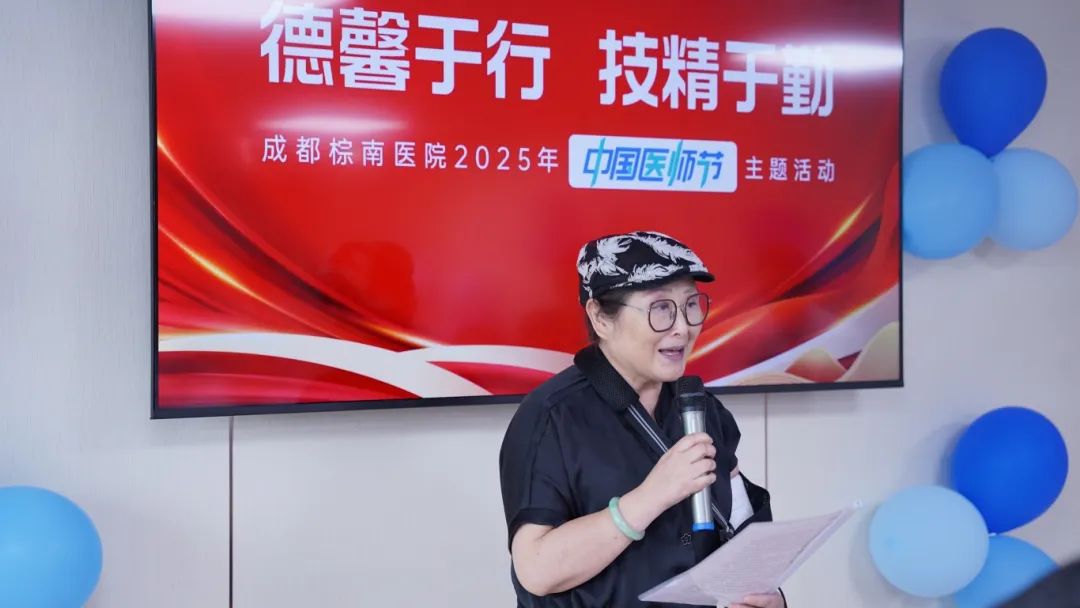 活动伊始,四川省中医药信息学会王笳会长发表了热情洋溢的讲话。“非常荣幸与在座各位辛勤奉献的医师同仁们共庆这个属于我们自己的光荣节日......”王会长高度肯定了成都棕南医院医师团队在守护群众健康方面做出的积极贡献,强调了医师职业在医疗卫生事业发展中的核心地位,并鼓励全体医师继续秉持医者仁心,以专业能力和人文关怀服务患者,为推动行业进步贡献力量。