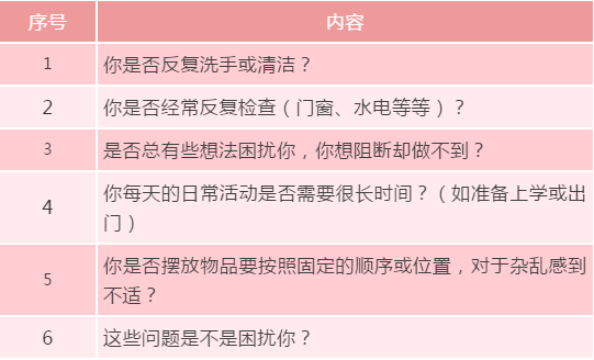 如果上面6个问题都是YES,而且每天要持续超过一个小时以上,明显地影响到了你的工作、学习、生活,有可能强迫症离你很近了!建议去看看医生。